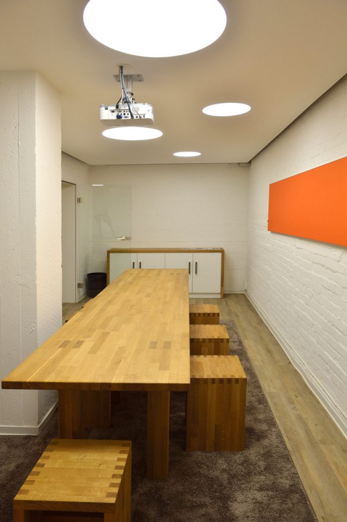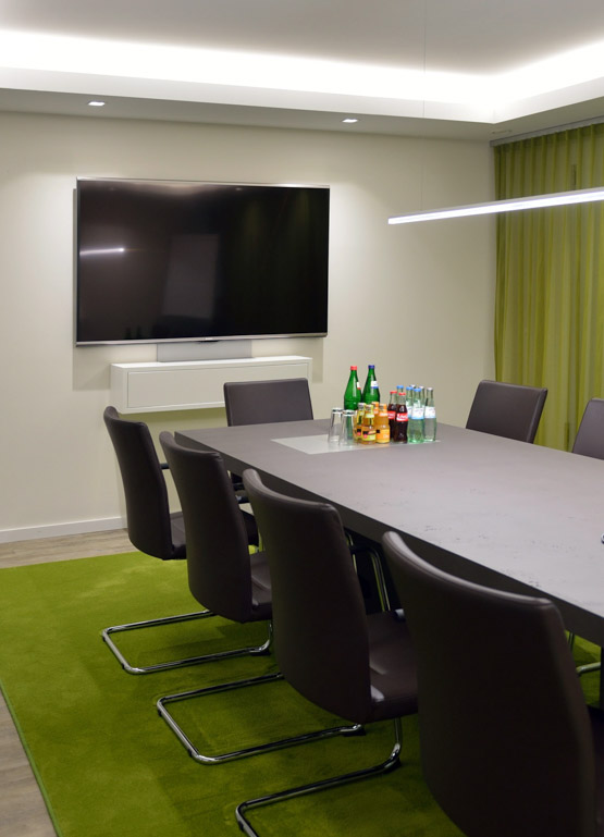 Pantry. Konferenzraum. Büroräume. Chefbüro. Foyer.