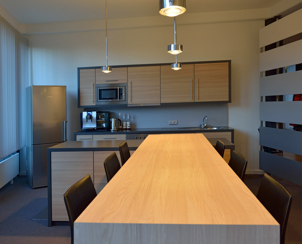 Pantry. Konferenzraum. Büroräume. Chefbüros.